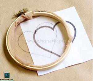 4- سپس آن را روی طرح قرار داده و طرح را روی پارچه میکشیم .