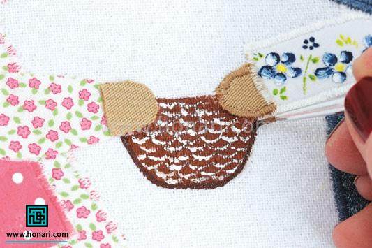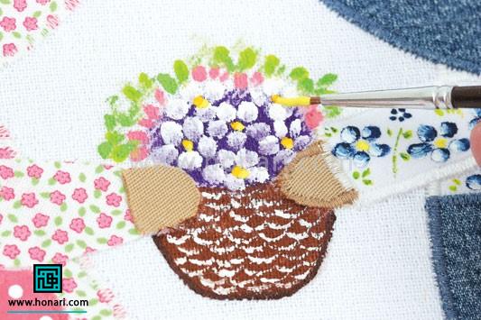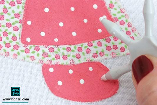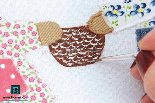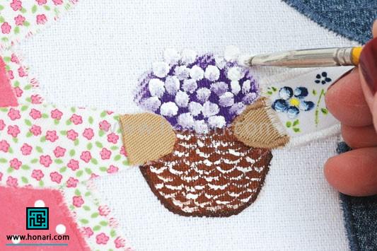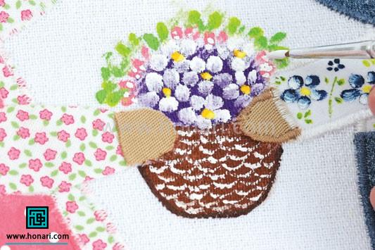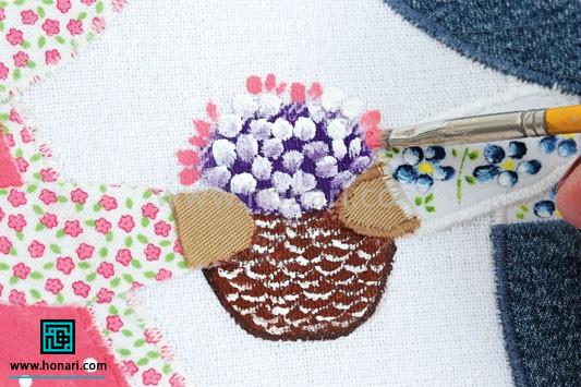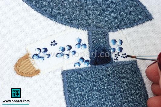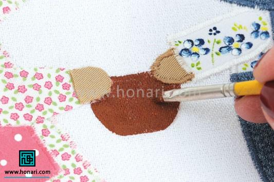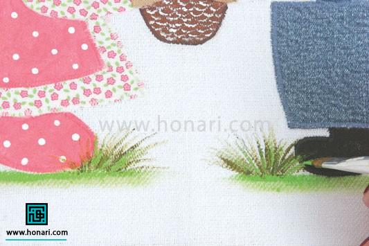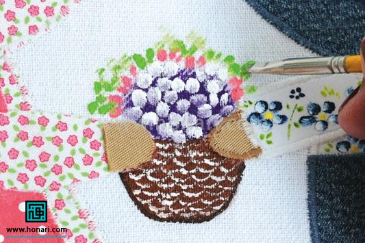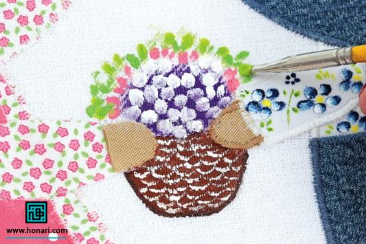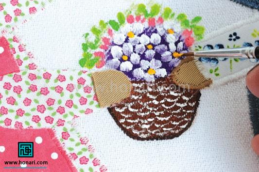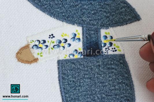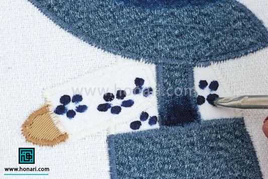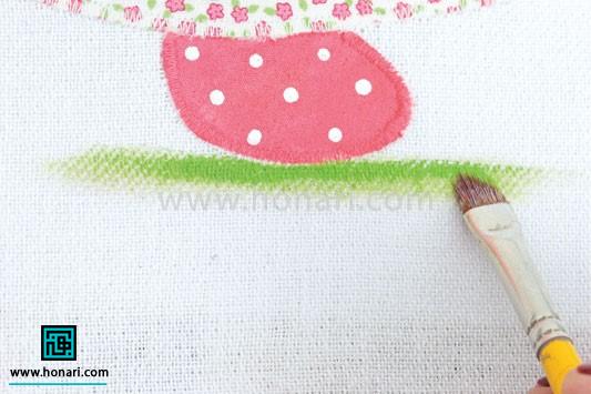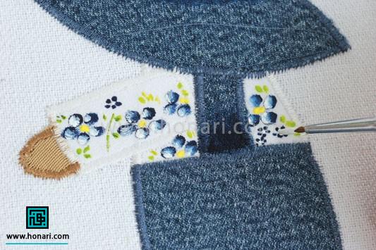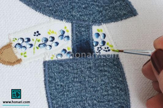 این آموزش نقاشی روی پارچه کمی متفاوت تر از دفعه های قبله، با این تفاوت که این دفعه از تیکه دوزی هم استفاده می کنیم.