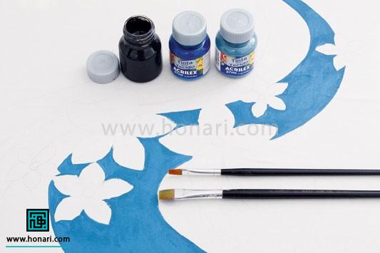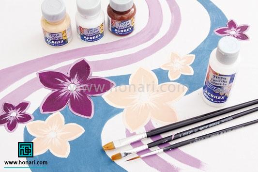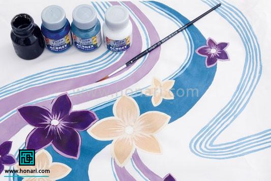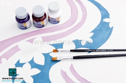 نقاشی روی پارچه رو با استفاده از قلم موهای شماره 8 و 12 و