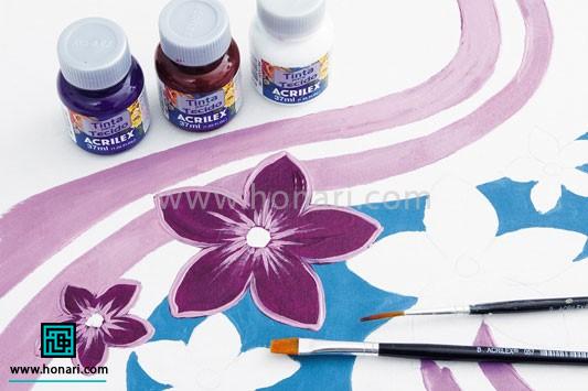 و با همون قلم موهای شماره 8 و 12 گل های بنفش رو رنگ می کنیم.
