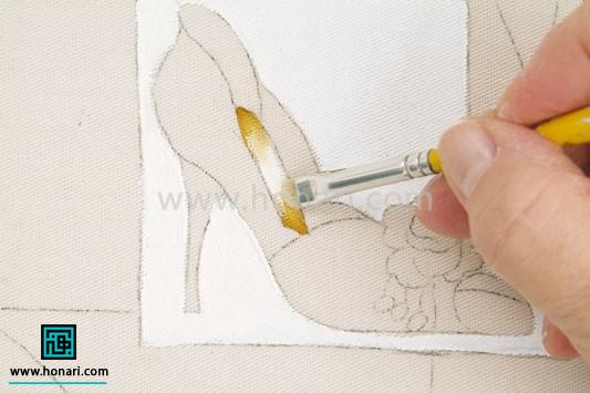 با قلم موی 6 و مقداری رنگ سفید کفش رو به وسیله حرکت عمودی قلم مو رنگ آمیزی می کنیم.