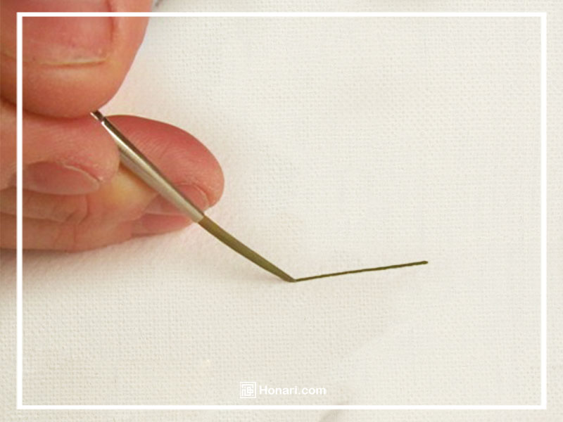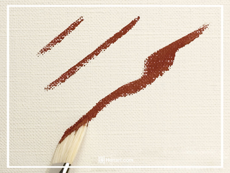 استفاده از کناره های این قلمو، به شما خطوط باریک و استفاده از جهت تخت آن، به شما خطوط پهن خواهد داد. و با تغییر فشار وارده به قلمو و یا چرخش مچ دست میتوان اشکالی که به تدریج باریک میشوند را ایجاد کرد.