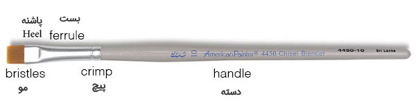 آن بست نقره ای را می بینید که موهای قلم مو را با دسته به هم وصل می کند؟ آن قسمت از قلمو فرول نامیده می شود. به طور کلی، سعی کنید رنگ روی فرول نباشد و قلم مو را تا فرول در رنگ فرو نکنید. وقتی رنگ روی فرل میافتد، معمولاً در یک حباب بزرگ بین فرول و موها متصل میشود و نتیجه (حتی پس از شستن آن) این است که موها از هم جدا میشوند و ساییده میشوند. پس تمام تلاش خود را بکنید که روی این قسمت از قلم مو رنگ نگیرید! پاک کردن رنگ خیس از این ناحیه سخت است و اگر خشک شود، سخت تر است ،اما اگر رنگی شد، باید تمیز کردن را از آنجا شروع کنید. حتی اگر بیش از 15 دقیقه طول بکشد.