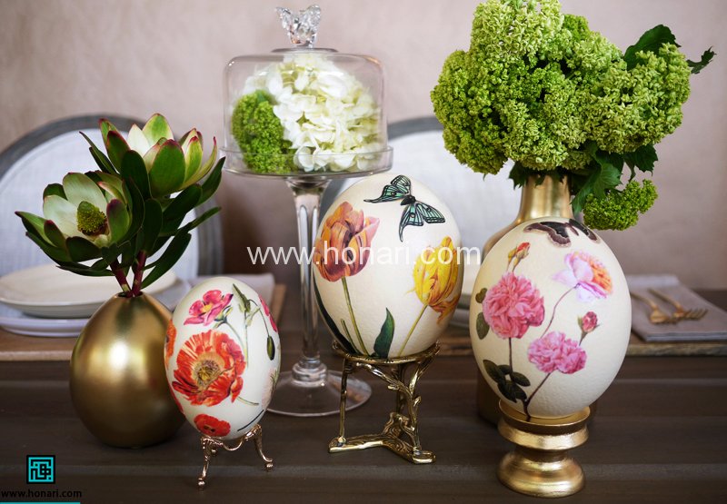 تخم مرغ پخته یا سفالی(این روش رو میتونید روی تخم شتر مرغ خالی شده هم انجام بدید و از اون به عنوان یه شی دکوری استفاده کنید)