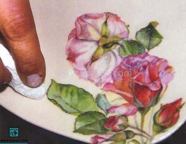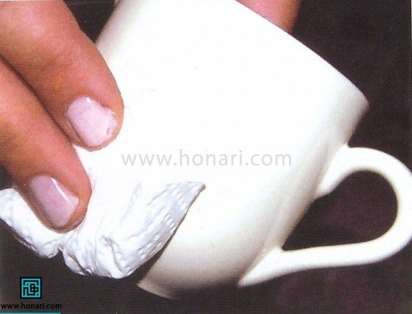 ابتدا خیلی خوب ظرف چینی را با دستمال کاملا تمیز میکنیم تا هیچ گونه اثر انگشتی روی ظرف باقی نماند
