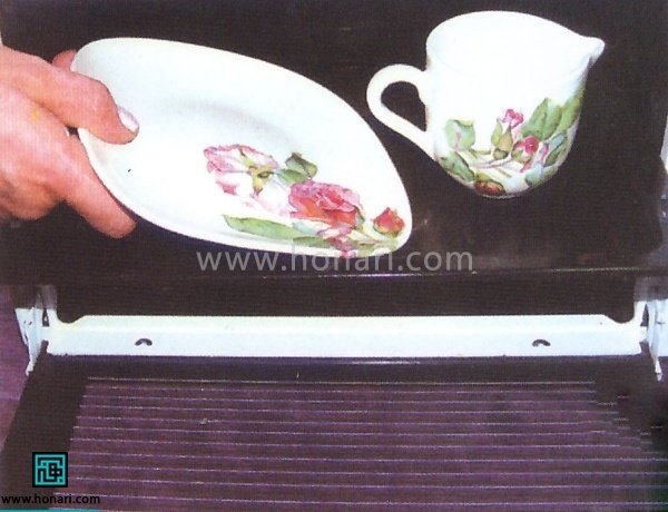 ظروف چینی تزئین شده را داخل فر میگذاریم تا به مدت 90 دقیقه و با دمای 130 درجه ثابت شود.