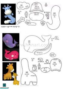 11-الگوی عروسک نمدی حیوانات طرح زرافه و نهنگ