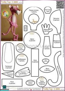 الگوی عروسک نمدی حیوانات طرح پلنگ صورتی