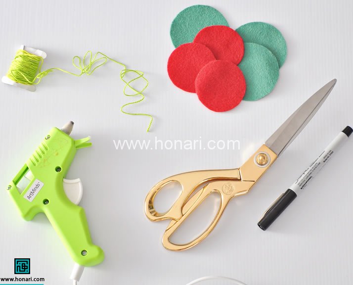برای ساخت این آویز هندوانه نمدی مواد و ابزار زیر رو باید تهیه کنید :