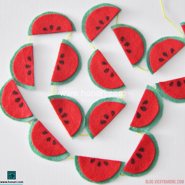می توانید با استفاده از سیخ های چوبی و هندوانه های نمدی که ساختید