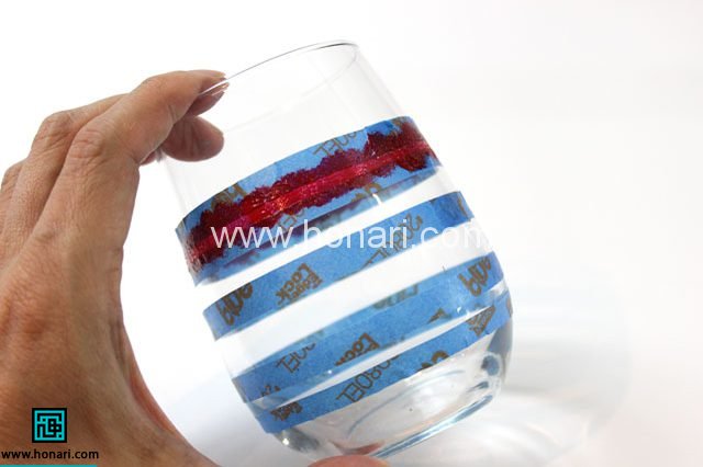 حالا با احتیاط نوار چسبمان را از تنگ جدا می کنیم. زمانی که رنگ روی کار هنوز خیس است، نوار چسب را بردارید. اگر رنگ کاملا خشک شود، زمانی که نوار را بر می دارید، مقداری از رنگ هم برداشته می شود.