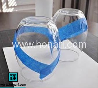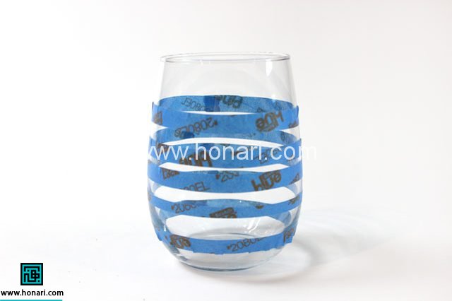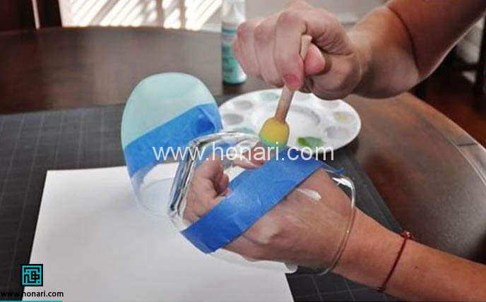 سپس دور ظرف را مانند شکل، نوار چسب می زنیم.