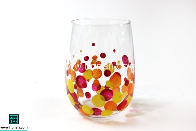 می توانید از طرح های متنوعی استفاده کنید. برای مثال می توانید یک تکه پنبه را بردارید، سر آن را گرد کنید و در رنگ ویترای بزنید. سپس روی شیشه را به شکل دایره های کوچک رنگ بزنید.