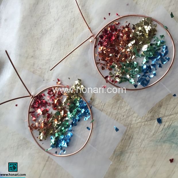 این آموزش اختصاص به ساخت گوشواره رزینی دارد. امروزه زیورآلات رزینی در بین همه خانم ها و هنرمندان طرفداران زیادی پیدا کرده است. این گوشواره رزینی بسیار زیبا است و در عین حال خیلی ساده درست می شود. در این آموزش گوشواره را به صورت رنگین کمانی درست می کنیم. در پایان مشاهده می کنید که حالت رنگین کمانی این گوشواره تا چه حد زیبا و جذاب است.