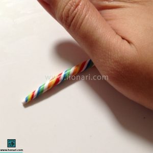 همه خمیرهای فیمو را با کف دست ورز میدیم و به شکل استوانه در می آریم، ترجیحا قطر همه استوانه ها یکسان باشه.