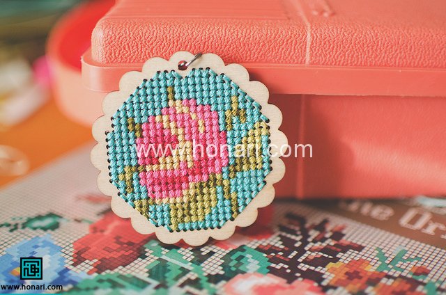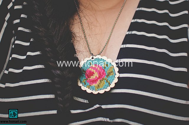 اینبار ما می خوایم طرحمون رو به جای پارچه،روی قاب گردنبند چوبی انجام بدیم