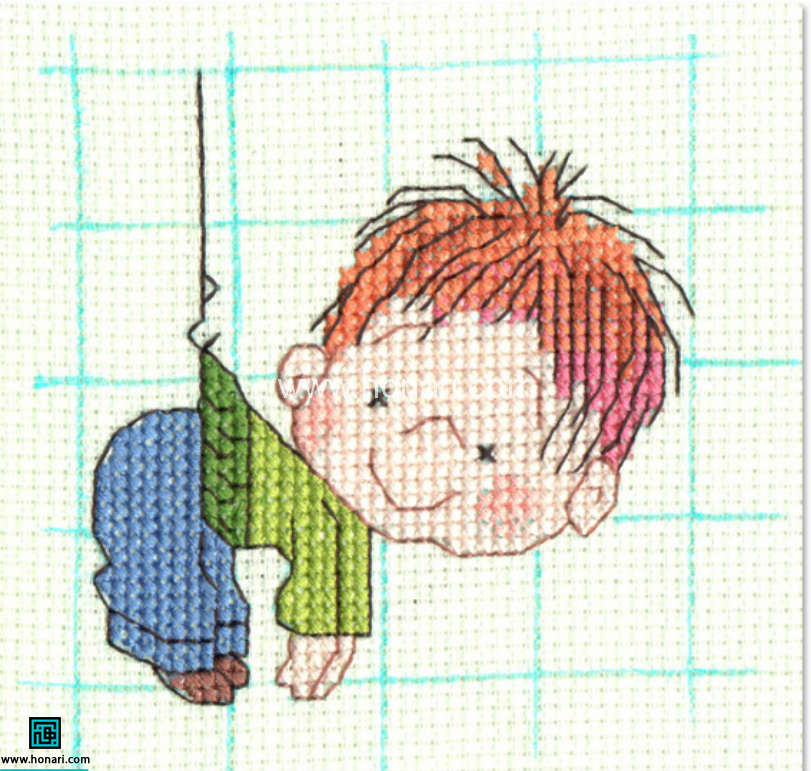 ابتدا به الگوی طرح پسربچه كه در تصویر زیر براتون قرار دادیم نگاه كنید و رنگ نخ مربوط به هر نماد در الگو رو مشخص كنید و روی یك برگه به شكل راهنما برای خودتون بنویسید تا در حین شماره دوزی گیج نشید و رنگ نخ اشتباهی به كار نبرید.البته اگر در شماره دوزی حرفه ای هستید نیازی به این كار نیست