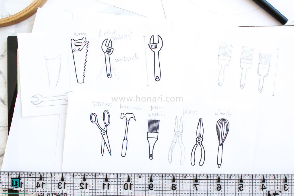 من تنها از اسکنر و پرینتر برای تغییر اندازه الگوهایم استفاده می کنم بنابر این به چیز دیگری نیاز ندارید. در طراحی کاملا آزاد و مختار هستید.