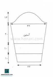 قد بافت به 40 سانتی متر که رسید برای گودی یقه از هر دوطرف ابتدا 2+3 دانه، بعد 9 دفعه 1 دانه و سپس 5+4 کور می کنیم.