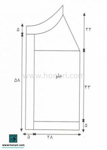 سجاف: با نخ 19000 از جلوها دانه در آورده، 5 سانتی متر 1 رو 1 زیر کشبافت می بافیم. در سجاف سمت چپ جا دکمه درست می کنیم.