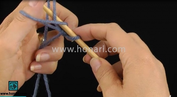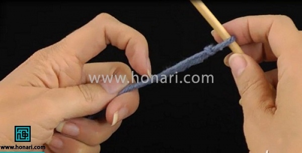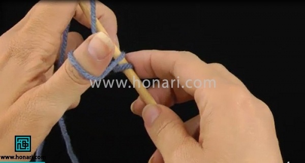 7- از زیر کاموا پیچیده شده دور انگشت اشاره رد کنید.