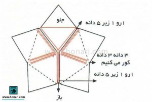 بعد از آن،در هر رج برگشت از هر دو طرف 1 دانه کور می کنیم تا 1 دانه باقی بماند.