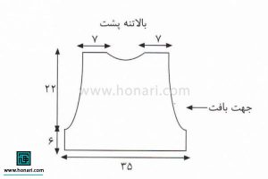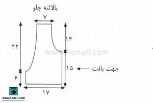 26 دانه دیگر اضافه کرده، 10 رج رکن می بافیم. برای گودی یقه پشت 3 دانه کور کرده، 17 رج رکن بافته، 3 دانه اضافه کرده، 10 رج رکن بافته، 26 دانه کور کرده، بعد 1+1+1 دانه کور کرده، 5 رج رکن بافته و دانه ها را کور می کنیم.