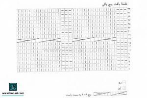 با نخ 4693 بورجوم اسپورت 133 دانه سر انداخته، 75 دانه را بصورت 12 زیر (هر 16 رج یک بار 6*6 پیچ)، 3 رو تکرار می کنیم. 58 دانه را 5 رج رو، 5 رج ساده بافته، قد بافت به 18 سانتی متر که رسید، برای گودی یقه از یک طرف 1 دفعه 9 و 6 دفعه 2 دانه کور می کنیم. قد بافت به 26 سانتی متر که رسد، 3 سانتی متر 2 رو، 2 زیر کشبافت بافته و دانه ها را کور می کنیم. در سمت چپ از قسمتی که پیچ داده شده بود، با فاصله های مساوی 4 عدد جا دکمه درست می کنیم.