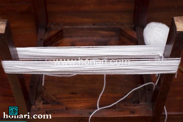 در این روش گل میز یا صندلی را وارونه کرده و کاموا را چند بار، به دور دو تا از پایه های آن بپیچید. دقت کنید که تعداد دوری که کامواها را می پیچید در هر بار باید مساوی باشد. چرا که ضخامت به دست آمده متفاوت می شود و ممکن است در زیبایی نهایی کار تاثیر منفی داشته باشد.
