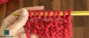 3- رج بعد را به همان صورتی که هست، یعنی دانه هایی که به سمت رو است به رو، و دانه هایی که به سمت زیر است به زیر ببافید.