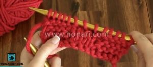 2- رج سوم: دانه هایی که به زیر بافته شده بود به رو، و دانههایی که به رو بافته شده بود را به زیر ببافید.