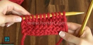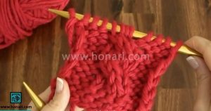 2- بافت را طوری انجام دهید که دانه هایی که برای پیچ است به زیر و دانههای چپ و راست آن به رو باشد.