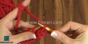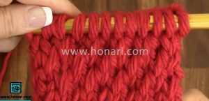 4- رج هفتم مانند رج سوم و رج نهم مانند رج پنجم بافته میشود. به همین ترتیب تا اندازه ای که بلندی کار مد نظر است کار را ادامه میدهیم. و مدل به صورت نشان داده شده در تصویرحاصل خواهد شد.
