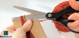برای ریشه زدن، ابتدا کاموای خود را به دور یک مقوا یا کتاب (به اندازه ای که میخواهید بلندی ریشه های شما باشد) بپیچید.