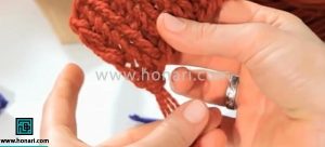 5- قلاب را بیرون بکشید، به صورتی که کاموا کامل بیرون نیاید و یک حلقه تشکیل شود.