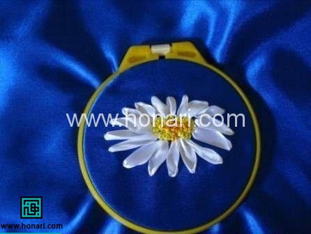 گل بابونه ی زیبای شما آماده س،این روبان دوزی آسان رو می تونید روی لباس،رومیزی،تابلو های تزیینی،كوسن و… انجام بدید