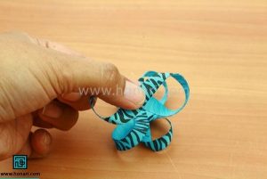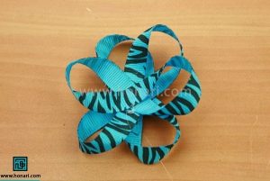 مرحله ششم: روبان های چسب خورده رو روی هم بگزارید تا شکل گل بدست بیاید.