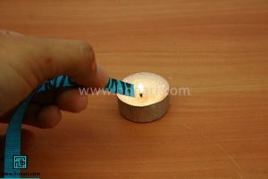 مرحله دوم: سر و ته روبان رو بسوزانید تا ریش نشود.