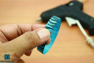 مرحله سوم: سر و ته روبان رو با چسب تفنگی به هم وصل کنید. که شکل دایره میشود.