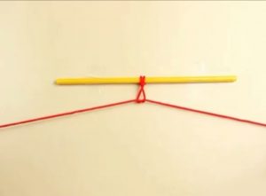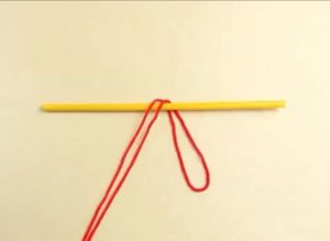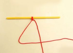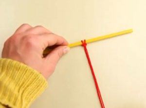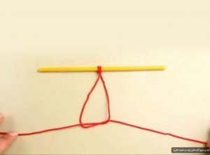 3- مطابق شکل یکی از نخ ها روی دیگری قرار دهید .