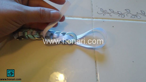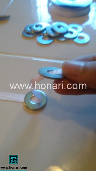 هنگامی که به آخرین واشر رسیدید، با کشیدن روبان از داخل حلقه ی آخر، واشر ها را در جای خود، محکم می کنید. برای درک بهتر تصاویر را نگاه کنید.