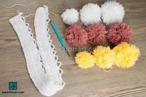 با سلام. امروز میخواهیم نحوه بافت آویز تزئینی  را با کمک قلاب و توپک برای شما آموزش دهیم.
