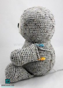 داخل بدن و سر را با الیاف پر کرده سپس ، نخ باقی مانده را از داخل زنجیره ها رد می کنید و نخ را می کشید و کور می کنید.