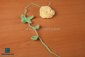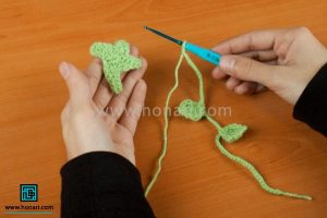 به میزان نصف مد نظر خود برای ساقه گل زنجیره زده. سپس به اندازه ای که می خواهید اندازه برگتان باشد روی زنجیره ها رابخیه نامرئی می زنیم.