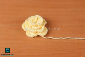 سپس از یک سر شروع می کنیم به جمع کردن تا به شکل گل در بیاید
