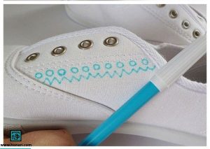 شما میتوانید با استفاده از رنگ پارچه کفش های ساده پارچه ای خود را طراحی کنید .