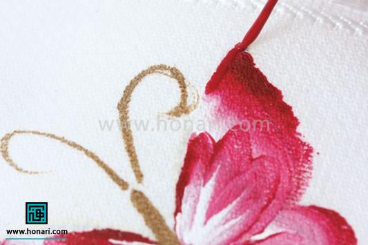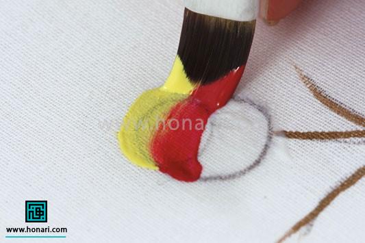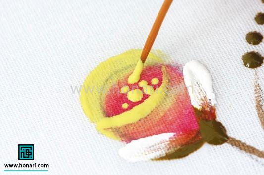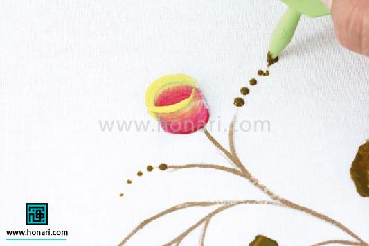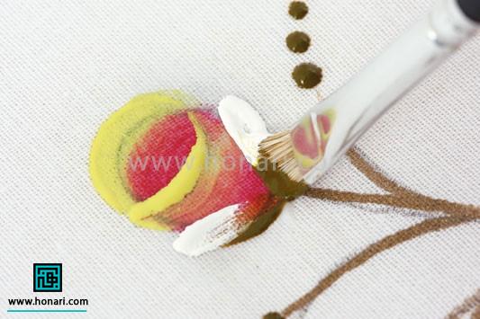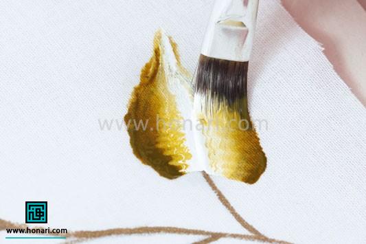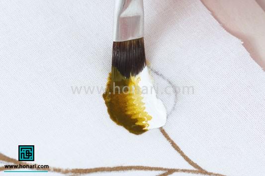 نقاشی روی پارچه باید جوری باشه که سمت سفید قلم مو سمت مرکز برگ قرار داشته باشه