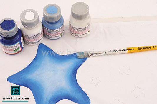آموزش نقاشی روی پارچه سرویس خواب با طرح ستاره دریایی به مواد زیر نیاز داره :