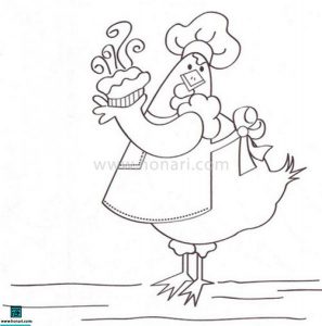 طرح کارتونی مرغ آشپز برای چاپ روی لباس