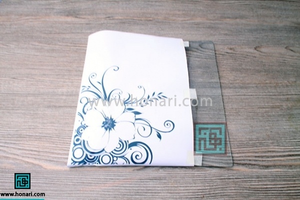 كاغذ كاربن رو روی شیشه و كاغذ طرح رو روی كاغذ كاربن میگذاریم